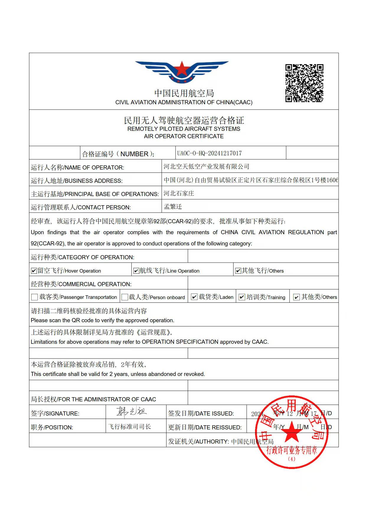 民用無人駕駛航空器運營合格證
