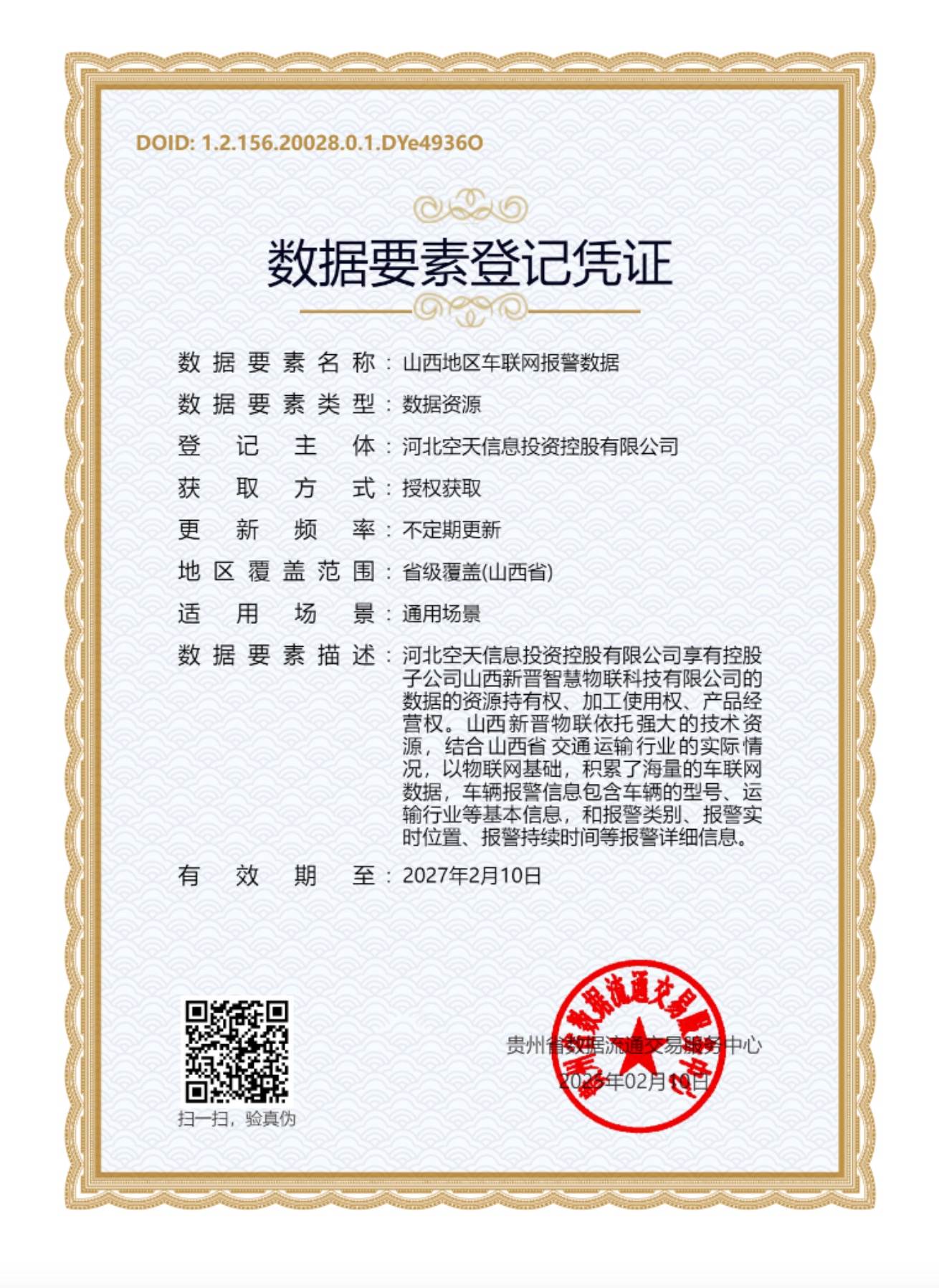 貴州省數據流通交易服務中心—數據要素登記憑證